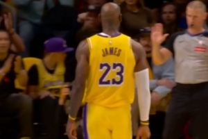 表示很无辜!詹姆斯背打强碾得分手指裁判泰勒·福特 后者摊手